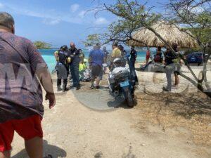 Diamars mainta a drenta informe di cu un persona a haya problema den lama na Mangel Halto, mesora a dirigi tanto polis, ambulans como tambe e equipo di rescate di bombero na e sitio. Polis ta prome den yega na e sitio y a bin compronde cu un homber di 56 aña a haya problema den lama y mesora ela haya problema nan a cuminsa yud’e pone riba un kayak trese cerca pa asina his’e na tera pa asina yud’e mihor cu CPR na yegada di e paramedico di ambulans y e equipo di rescate di bombero a sigui haci intentonan pero despues di un rato e ambulansnan mes a yega asina mes no a duna resultado positivo y a stop cu e resucitacion y a pidi e dokter forensyco presenta pa asina constata e morto di e turista.Na famia di e fayecido awe24.com ta extende su mas sentido palabranan di condolencia.