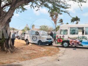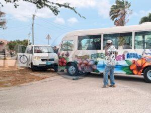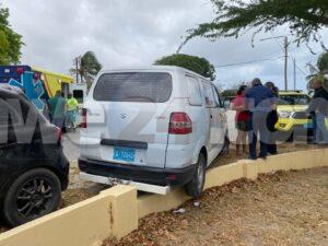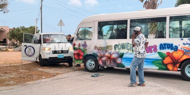 Diahuebs merdia a drenta informe di un accidente cu hende herida na e crusada Pampoenastraat/ Caya Juancho Kock, mesora a dirigi tanto polis como ambulans na e sitio. Na yegada di e patruya ya caba ambulans tabata tey atendiedo e victimanan. Locual a sosode ta cu e Suzuki Carry Van biniendo di pariba bayendo pabao no a para pa duna preferencia na e Hyundai Minibus County cu tabata bayendo nort for di zuid y a dal e Carry Van bir’e 90 grado mand’e te otro banda di caminda mientras e bus a bira 45 grado. Ambuulans a atende e chauffeur y a transporte pa hospital mientras un turista den e bus tambe a resulta herida pero a ser atendi na e sitio mes.
