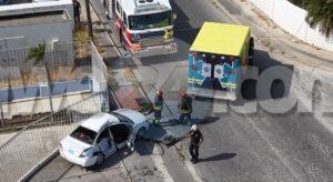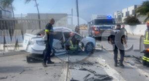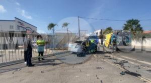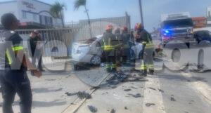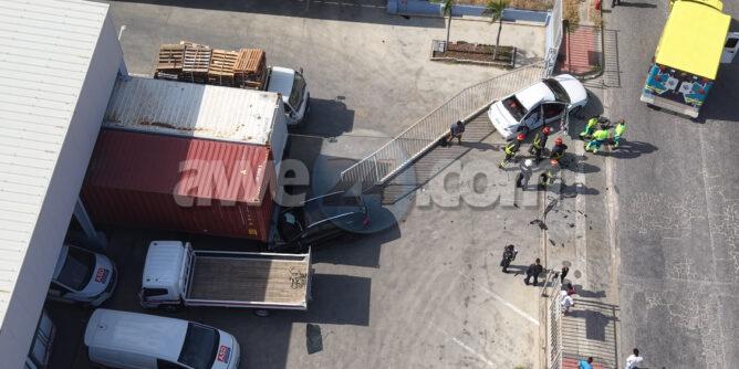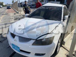 Diasabra atardi informe di un accidente cu hende herida na Schotlandstraat, mesora a dirigi tanto polis, ambulans y tambe bombero como lo tabata tin hende pega den auto. Na yegada di e patruya a bin compronde cu aki ta trata di un accidente unda cu un auto color blauw biniendo for di Bushiri pariba a subi sin duna preferencia na e Mitsubishi Lancer bayendo nort mande bay dal na e porta di ASD y un auto Chevrolet Captiva di nort a desvia na man drechi y tambe a dal na e porta y a bay pega bao un container. Debi na e impacto 2 persona no por a sali na e prome instante. Na yegada di bombero a yuda nan sali sin a usa equiponan di rescate. Na yegada di e ambulans a atende e victimanan na e sitio mes. Pa locual ta e auto blauw a sigui core bandona e sitio pero debi na e grabacion di e accidente polis a logra haya sa ta cual auto e ta y lo bay p’e si e no entrega su mes na un di e wardanan di polis.