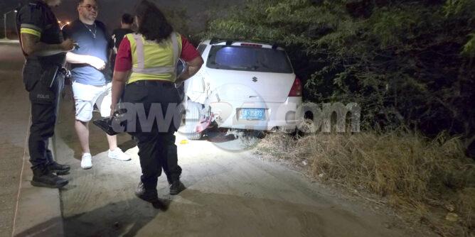 Diadomingo madruga a drenta informe di un accidente na Palm Beach, mesora a dirigi un patruya na e sitio. Na yegada di e patruya a bin compronde cu aki ta trata un accidente hit and run unda e chauffeur despues di a dal e auto mand’e den mondi a sigui core bay. Un rato despues un otro patruya a topa e auto cu a sigui core bay y a par’e detene e chauffeur kende tabata bao influencia. Ainda e auto tabata tin piesa di e otro auto pega riba dje y su color. Ademas e auto tabata varios golpi di anterior indicando cu e posiblemente lo ta su costumber di dal auto y core bay. Afortunadamente ningun hende a resulta herida.