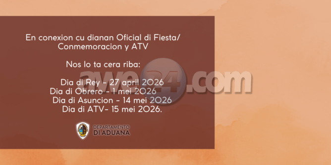 ORANJESTAD- Departamento di Aduana ta recorda tur cliente y publico general cu nan oficinanan lo ta cera riba e siguiente dianan di Fiesta/Conmemoracion: