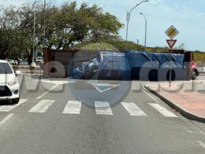 Diahuebs atardi a drenta informe di cu un oplegger di trekker a los y a kentel na e rotonde y a tranca e trafico, mesora a dirigi un patruya na e sitio. Na yegada di e patruya a haya e trafico tur tranca y mester a alivia y desvia e fluho di trafico.