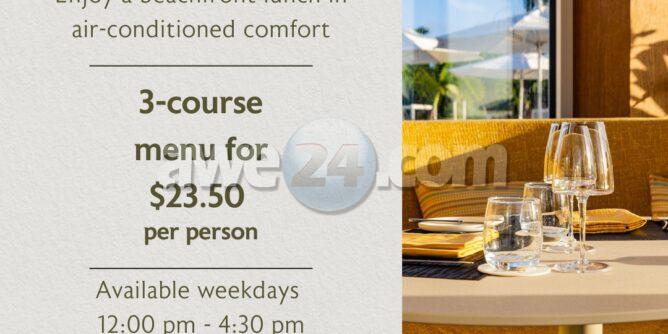 EAGLE BEACH, Aruba – April 17, 2026 – Tin un miho luga pa hasi negoshi na Aruba, y e ta situa riba Eagle Beach mes. Elements Restaurant, situa na e renombra, adults-only Bucuti & Tara Beach Resort, a introduci su Executive Lunch nobo, un experiencia culinario di tres plato diseña pa profesionalnan cu ta busca un ambiente comodo y priva pa un almuerzo di trabou eleva. Disponibel durante dianan di siman for di 12:00 te 4:30 p.m. y cu un prijs di $23.50 pa persona, e Executive Lunch ta inclui un escogencia di entrada, plato principal y postre, hunto cu un bebida no-alcoholico gratis.