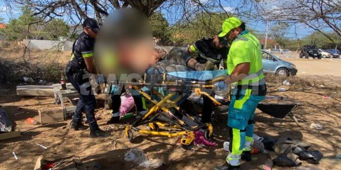 Despues di cu diasabra a purba yuda e homber cu tabata biba antes bao un tent pabao di rotonde Noord y awor na Boegoeroei pa e haya tratamento medico na hospital, awe diadomingo mainta ya cu e no por para riba su pianan y ta full hincha ela laga ambulans cu ayudo di polis pa porfin e haya atencion medico indica na hospital. E homber su lipnan y lenga ta full hincha y ta keha di dolor tur caminda su flanelnan y camisanan cu e tabata tin bisti tabata full lora cu cadena y su carsonnan tambe ta cu cadena, su pianan ta asina hincha cu ni por kita e sapato. E situacion y su salud a empeora asina hopi cu ni para e por para riba su pianan. Nos ta spera cu e haya un atencion medico adecua cu un espacio den Respaldo pa asina e recupera pronto y haya e ayudo necesario.