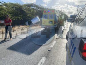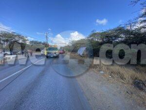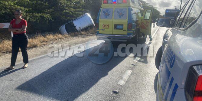 Dialuna mainta a drenta informe di un accidente cu herida na Pos Abao, mesora a dirigi tanto polis, ambulans y hasta bombero na e sitio. Na yegada di e patruya a bin compronde cu aki ta trata si un accidente unda e auto su dilanti a brake diripiente ela kita bay na man drechi bay cay den e greppel y debi na esaki tanto e chauffeur como 2 ocupante di i10 a resulta herida. Cu ayudo di bomberonan a logra saca e victimanan. Na yegada di e ambulansnan a atende e victimanan y a transporta 2 pa hospital.
