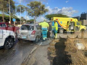 Dialuna mainta a drenta informe di un accidente cu hende herida na e rotonde Tarabana, mesora a dirigi tanto polis como ambulans na e sitio. Na yegada di e patruya a bin compronde cu aki ta trata di un accidente unda e chauffeur di un Mitsubishi ASX no a regula su velocidad ni a mantene distancia a bay dal tras di un Suzuki Swift maneha pa un dama. Debi na e impacto e dama a resulta herida. Na yegada di e ambulans nan a atende e victima y cu deliberacion di su dokter di cas ela ser atendi na e sitio mes.