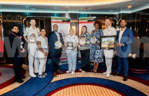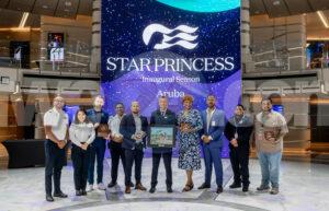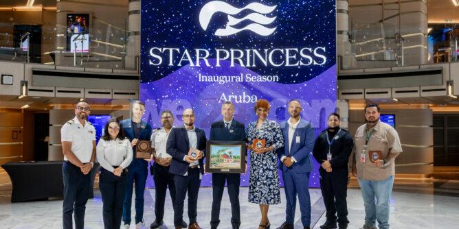 Riba 16 di april 2026 Aruba a ricibi e prome yamada, esta ‘first call’, di Queen Anne, representa localmente pa agencia di waf SEL Maduro and Sons, y Star Princess, representa pa Armada Port Agency. Visitor Care Liaison di A.T.A. Marouska Heyliger a atende e first call conhuntamente cu representantenan di APA N.V., resaltando e colaboracion entre e stakeholdernan clave di destinacion Aruba.