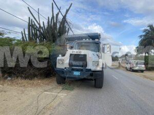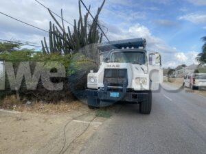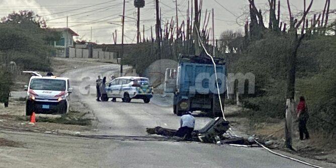 Diamars mainta a drenta informe di un accidente na Angochi, mesora a dirigi un patruya na e sitio. Na yegada di e patruya a bin compronde cu solo a blind e chauffeur di un truck y ela bay na man drechi dal e “ hoogspanningsmast” cual a causa cu coriente a bay na Santa Cruz.
