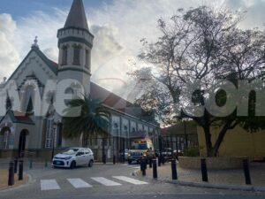 Diadomingo mainta a drenta informe di cu un homber di edad a cay flauw na Pro-Catedral San Francisco, mesora a dirigi un ambulans na e sitio. Na caminda pa e sitio a bin compronde cu ya caba e homber a bin bij caba pero no tabata mustra bon, Na yegada di e ambulans nan a atende e victima y despues di un deliberacion cu su dokter di cas e por a keda.