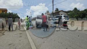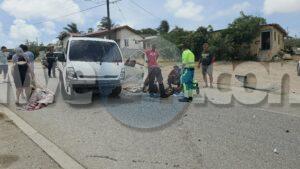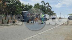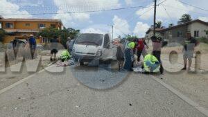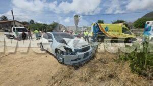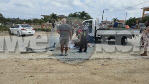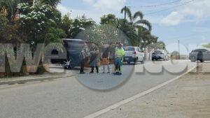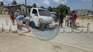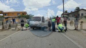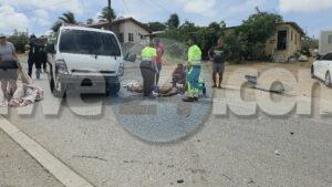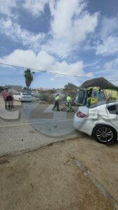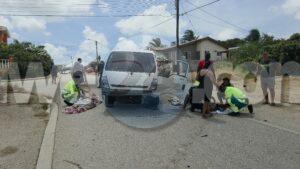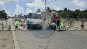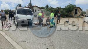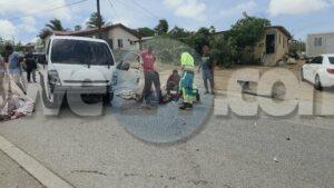 Diadomingo merdia a drenta informe di un accidente cu hende herida riba e caminda di Verano pa Sero Biento, mesora a dirigi tanto polis como ambulans na e sitio. Na yegada di e patruya a bin compronde cu aki ta trata di un accidente undaun pick-up truck a bay na man drechi pa tuma un “u-turn” pero net na e momentonan ey un auto Nissan Skyline ta baha cu basta velocidad riba e caminda ey y como cu e no a haya preferencia dal dilanti di e pick-up tanto e chauffeur di e pickup y e yiu na banda a resulta herida. Na yegada di e ambulans nan a atende ambos victima y a transporta nan pa hospital. E Skyline no tabata tin su papelnan na ordo pero e chauffeur tabata tin su rijbewijs.