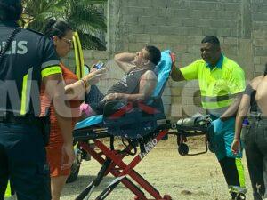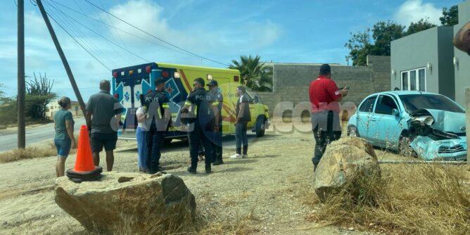 Diadomingo atardi a drenta informe di un accidente cu hende herida na Jaburibari, mesora a dirigi tanto polis como ambulans na e sitio. Na yegada di e patruya a bin compronde cu aki ta trata di un accidente unda e chauffeur di un Nissan March a bay sali for di su cas y pa motibo desconosi ela sali bay dal riba kashi di coriente di cas di su bisiña. Debi na e impacto fuerte e chauffeur a resulta herida. Na yegada di e ambulans nan a atende e chauffeur y a transporte pa hospital.