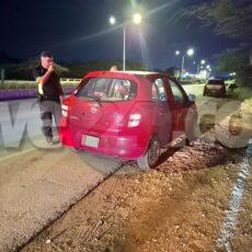 Diasabra madruga a drenta informe di un accidente na e rotonde Seroe Patrishi, mesora a dirigi patruya na e sitio. Na yegada di e patruya a bin compronde cu un chauffeur burachi coriendo e Nissan March cu velocidad mucho halto yegando e rotonde di Seroe Patrishi a tuma e birada mucho grandi y a perde control bira 180 grado ranca borchi trafico y bay dal auto staciona. Polis mesora a nota cu e chauffeur ta bao influencia y a detene.