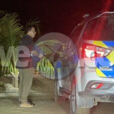 Diadomingo madruga durante un patruya banda di Coco Loco Bar na Eagle Beach polisnan a bin logra topa cu un pick-up truck gechok den e santo blanco, mesora polis a baha bay atende cu e chauffeur y dube un multa.