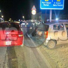 Diasabra anochi a drenta informe di cu tin un grupo di hoben coriendo cu arma blanco den un Nissan March blauw cla den area di e hotzone banda di e hotelnan highrise, mesora a dirigi e patruyanan na e sitio. Na altura di Palm Beach un patruya a logra di topa y a para e vehiculo aki. Polis a busca den e auto y a logra haya e arma blanco y despues a laga e hobennan aki sigui rumbo pa nan cas directamente.