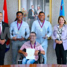 ORANJESTAD: Riba 17, 18 y 19 di mei ultimo, a tuma luga e torneo Interinsular ABC organisa pa Club di Dam Arowak. Un campeonato di dam cu Sr. Rolin Croes a inicia mas cu dies (10) aña pasa. Un fin di siman di competencia, unda cu Aruba, Boneiro y Curaçao a bataya pa conkista e titulo maximo di e torneo. Cada pais a participa cu 2 team di 2 persona. Minister Endy Croes tabata presente diabierna mainta p’e apertura, unda el a desea e ekiponan hopi exito. “Ta bunita pa trece nos rumannan di Curaçao y Boneiro hunto” den un torneo amistoso. Deporte ta expande amistad y hermandad entre e islanan”, mandatario di Deporte a enfatisa. Minister Endy Croes hunto cu e presidente di Club di Dam Arowak Sr. Ricardo Wever a duna inicio oficial na e torneo Interinsular ABC. Por ultimo, Minister Endy Croes ta gradici p’e invitacion alabes ta felicita e ganadonan.