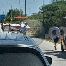 Diasabra merdia a drenta informe di un accidente pisa na altura di Citgo Boulevard, mesora a dirigi tanto polis como ambulance na e sitio. Na yegada di e patruya a bin constata cu un trailer mal sergura tras di un truck lo a los bay den trafico contrario impactando un vehiculo. E impacto aki a hasi cu e forklift a kita for di e trailer y core bay para na banda di caminda. E chofer di e vehiculo a ricibi un kap y e pasahero un par di rasca cu poco dolor. Ambulance a asisiti na e sitio y a transporta e chauffeur pa hospital.