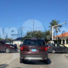 Diadomingo atardi a drenta informe di un accidente banda di Weng Kee na Piedra Plat, mesora a dirigi un patruya na e sitio. Na yegada di e patruya net e pleitamento y discucion a caba. Aki a bin compronde cu ta trata di un accidente unda un auto a brake laat slip bay dal tras di e pick-up cu tabata birando. Afortunadamente ningun hende a resulta herida.