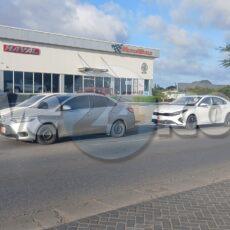 Diahuebs mainta a drenta informe di un incidente na e rotonde Mahuma, mesora a dirigi un patruya na e sitio. Na yegada di e patruya a bin compronde cu aki ta trata di un incidente unda e chauffeur di un trekker lastrando un container pero debi cu ela tuma e birada mucho duro y cortico e container a perde balans y a cay. Afortunadamente e no a cay riba ningun hende y ningun hende a resulta herida. A tarda basta rato prome cu a logra libera e container di e situacion.