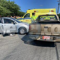 Diasabra mainta a drenta informe di un accidente dilanti e pompstation na Paradera, mesora a dirigi un patruya na e sitio. na yegada di e patruya a bin compronde cu aki ta trata di un accidente unda cu e chauffeur di e pick-up blanco a bay core duro riba e caminda muha door di e yobida y a slip perde control bay dal riba e pick-up contrario. Afortunadamente ningun hende a resulta herida.