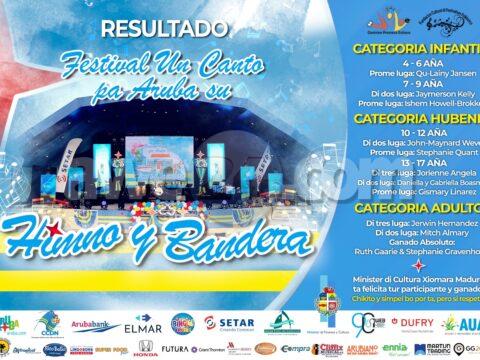 Minister di Cultura Xiomara Maduro ta felicita tur ganador di Festival ‘Un Canto pa Aruba su Himno y Bandera’ – Infantil, Hubenil y Adulto. E inicio di celebracion luna cultural a resulta exitoso, pabien Aruba!
