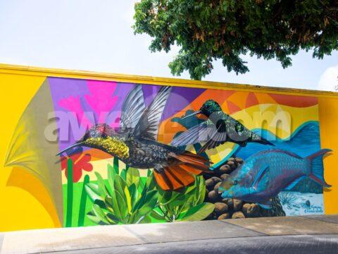 Publico por gosa di un mural nobo den centro di San Nicolas. A.T.A. a comisiona artista local, Armando Goedgedrag, pa crea e mural aki. …