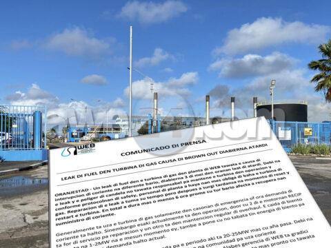 ORANJESTAD – Un leak di fuel den e turbina di gas den planta di WEB tawata e causa di interupcion di coriente na diferente bario,…