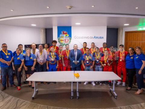 ORANJESTAD: Diabierna ultimo, Minister di Enseñansa y Deporte Endy Croes a ricibi ekipo di SV. Britannia cu a titula campeon di Copa ABC na Boneiro….