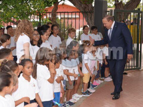 ORANJESTAD: Dialuna mainta, Minister Endy Croes huntocu mascota Wiwi a bishita scol preparatorio y basico di Mon Plaisir. Manera ta conoci, Weganan Escolar 2024 ta…