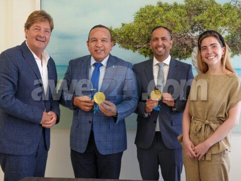 ORANJESTAD: Diamars ultimo, Minister Endy Croes huntocu colega Minister Dangui Oduber a ricibi bishita di Sr. Keesvan Muiswinkel, kende ta organisado di e famoso caredainternacional…