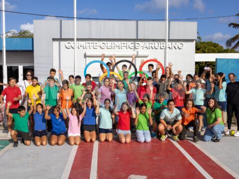 A duna tour di cas di Comite Olimpico Arubano y conta over Olimpismo Alumnonan di Mon Plaisir Basis School 6de klas di bishita na COA