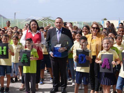 ORANJESTAD: Diahuebs mainta, Minister di Enseñansa y Deporte Endy Croes hunto cu Prome Minister Evelyn Wever-Croes a bishita scol basico Maria Goretti College na Paradera…