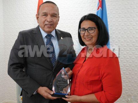 ORANJESTAD: Dialuna atardi, den un encuentro ameno Minister Endy Croes a ricibi bishita di Sra. Rosanna Ridderstaat. Na luna di maart ultimo, Sra. Ridderstaat a…