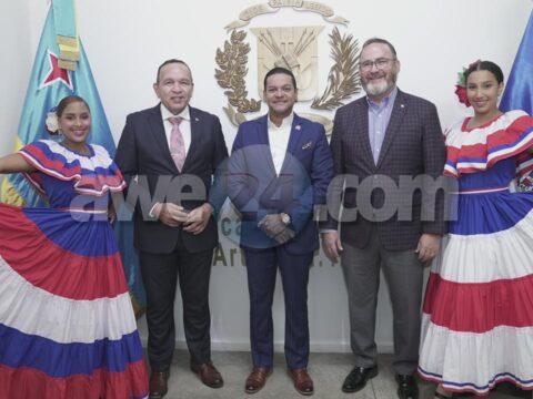 Oranjestad; Diahuebs ultimo Minister Endy Croes hunto cu colega Minister Glenbert Croes a bishita Consulado di Republica Dominicana pa presencia e lansamento di e proyecto…