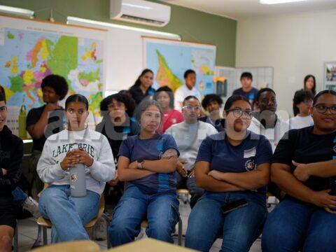 ORANJESTAD: En conexion cu e proyecto di Studentenkamer, Minister Endy Croes ta bishitando diferente scol secundario na Aruba pa invita e alumnonan pa un atardi…