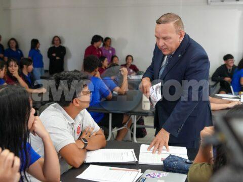 ORANJESTAD: Dialuna mainta, Minister Endy Croes a bishita Colegio Nigel Matthew pa invita e alumnonan di“voorexamenklas” y “examenklas” pa un sesion informativocu ta tuma luga…
