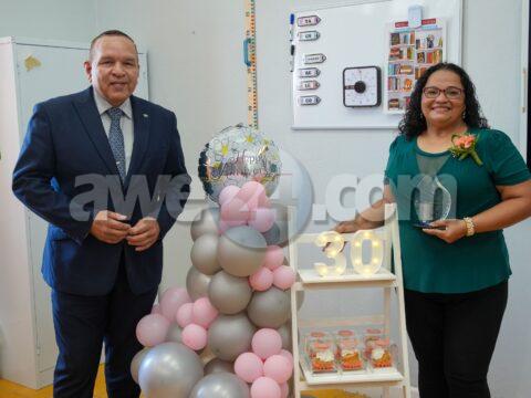 MINISTER ENDY CROES TA FELICITA Y GRADICI JUFFROUW SHAMILA BRIEZEN CU 30 AÑA DEN ENSEÑANSA DI ARUBA Danki pa e dedicacion, amor y profesionalismo pa educa nos muchanan.
