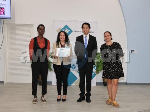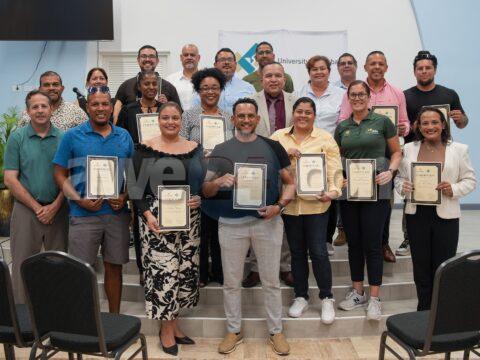 MINISTER ENDY CROES A HACI ENTREGA DI E PROME MICRO CERTIFICATE PROGRAM IN SPORT & EVENT MANAGEMENT NA UNIVERSIDAD DI ARUBA Pabien na tur 22 participante cu nan logro!