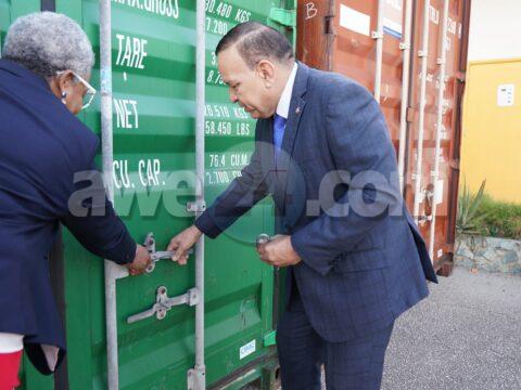 Minister Endy Croes: SCOL BASICO SANTA FAMIA A RICIBI CONTAINERNAN CU MATERIALNAN FOR DI HULANDA.