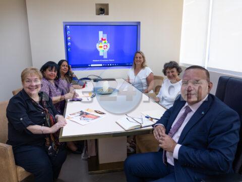 ORANJESTAD: Recientemente, Minister di Enseñansa y Deporte Endy Croes a reuni cu Fundacion Arubano di esnan Visualmente Incapacita (FAVI), directora Cetty Baarh-Bijlhout y Meredith Faarup…