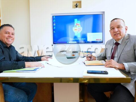 ORANJESTAD: Recientemente, Minister di Enseñansa y Deporte Endy Croes a comparti informacion di e reunionsemanal cu directora di Departamento di Enseñansa Aruba Sra. Anne-Marie Proveyer…