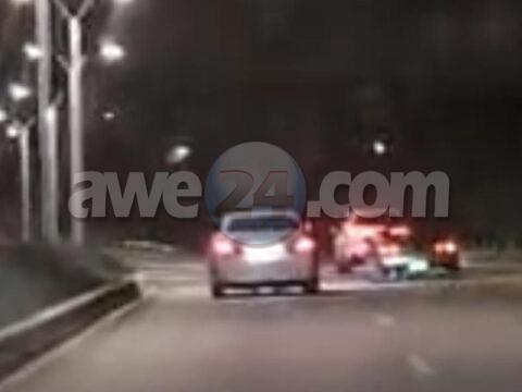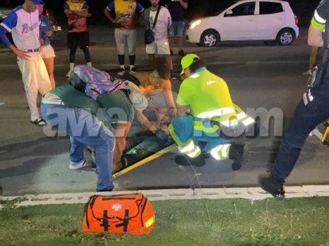 [VIDEO] Motociclista a perde control riba E.J. “Watty” Vos blvd. pasa over di e median bay cay otro banda di caminda.