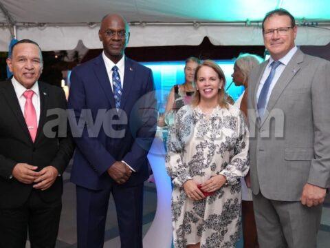 MINISTER ENDY CROES A ATENDE RECEPCION DI DESPEDIDA PA GOBERNADOR HOLIDAY DI SINT MAARTEN OFRECI PA GOBERNADOR DI ARUBA, SR. ALFONSO BOEKHOUDT.