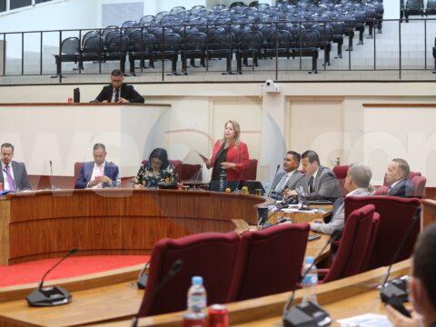 ORANJESTAD – Siman pasa durante di tratamento di Landsverordening instelling ministeries (LIM) den Parlamento, Prome Minister Evelyn Wever – Croes a duna splicacion amplio di…