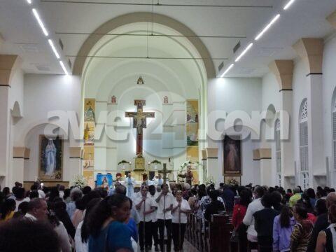 [VIDEO] Grupo di feligresnan di Pro Catedral San Francisco tambe a sali for Oranjestad bay te Alto Vista den caminda di Cruz