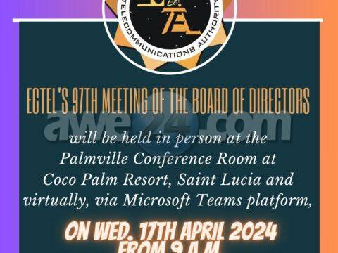 Castries – Saint Lucia – 11th April 2024 – Telecommunications leaders making up the Eastern Caribbean Telecommunications Authority’s (ECTEL’s) Board of Directors (BOD) are set…