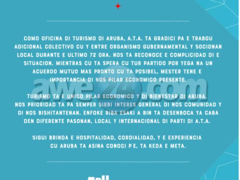 COMO OFICINA DI TURISMO DI ARUBA, A.T.A. TA GRADICI PA E TRABOU ADICIONAL COLECTIVO CU Y ENTRE ORGANISMO GUBERNAMENTAL Y SOCIONAN LOCAL DURANTE E ULTIMO…