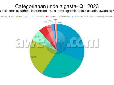 A.T.A.: Transaccion cu tarhetanan di Visa a aumenta den prome kwartaal di 2023 Turistanan a gasta $155 miyon dollar na Aruba cu e tipo di caarchi aki