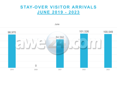 JUNI 2023 DEN COMPARACION CU 2019 Y 2022 Den luna di juni 2023 nos destinacion a ricibi un total di 100,549bishitante “stay-over”. Si compara luna…