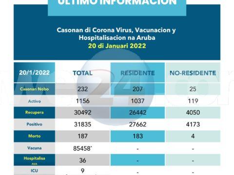ORANJESTAD- 20 januari 2022. Segun resumen di awe 257 persona a recupera y un total di 232 caso nobo di COVID-19 a keda registra di…