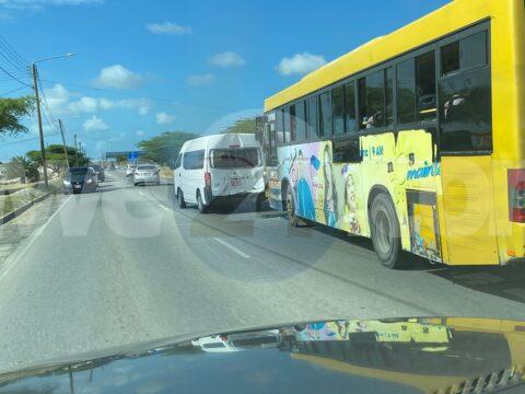 Dialuna atardi a drenta informe di un accidente unda cu un bus di Arubus a bay dal tras di un autobus na Savaneta, mesora a…